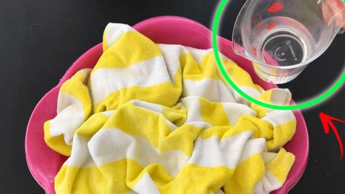 Tauchen Sie die Handtücher ein und lassen Sie sie eine Weile einweichen. Sobald Sie sie gut getrocknet haben, gibt es einen kleinen Trick, den Sie befolgen können.