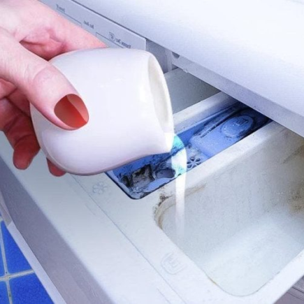• Wir gießen  weißen Essig in den Behälter Ihrer Waschmaschine , der für den Weichspüler bestimmt ist