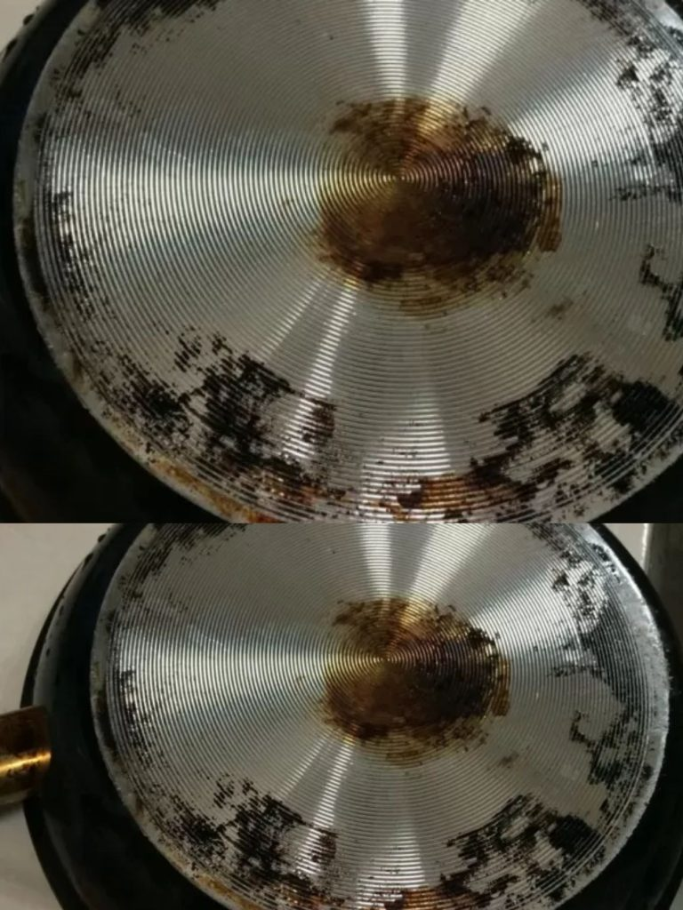 Manche Töpfe und Pfannen, auch neue, neigen dazu, an der Außenseite des Bodens schwarz zu werden und sehen sofort alt und ungepflegt aus. Es ist sicherlich nicht möglich, sie ständig zu wechseln, einfach weil dies ein Nachteil ist. Es braucht viel mehr und viel länger, bis eine Pfanne nicht mehr benutzt wird.