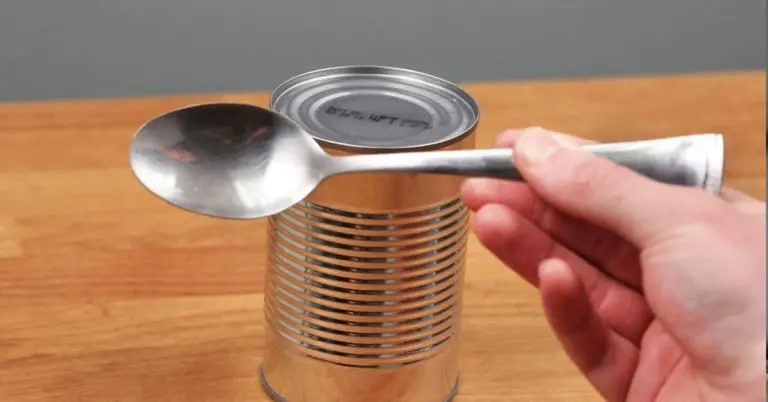 Es ist möglich, eine Dose ohne Dosenöffner zu öffnen. Für diese Technik, bei der Sie sich auf die Festigkeit Ihrer Handgelenke verlassen, wählen Sie zunächst einen Löffel aus, den Sie für stark genug halten. Mit letzterem entfernen Sie den Deckel von Ihrer Dose.