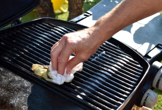 Die Zwiebel hilft, Fett zu entfernen, wo die Kartoffel reinigt und Rost verhindert. Dies eignet sich hervorragend für die regelmäßige Wartung eines leicht verschmutzten Grills. Schneiden Sie sie einfach in zwei Hälften, bevor Sie den Grill schrubben. Anschließend gründlich ausspülen und bei Bedarf die andere Hälfte verwenden.