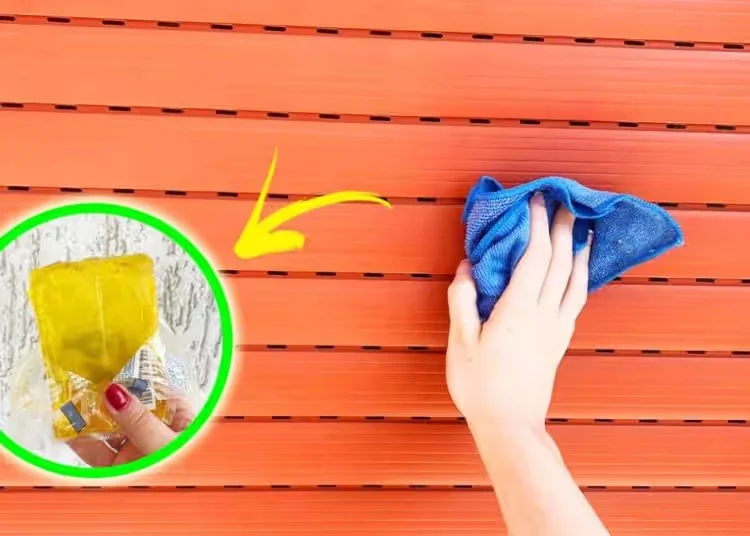 Füllen Sie einen Eimer mit lauwarmem Wasser, geben Sie 2 Esslöffel geriebenes Produkt hinzu und schrubben Sie dann die Fensterläden mit einem Schwamm.